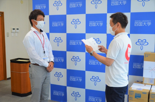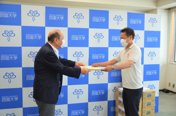 現在コロナ禍において対外試合や練習も制限されている中、それに立ち向かい頑張っている四国大学指定競技部へ活動支援として、
